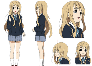 dan kulit yang sangat cerah. Dia juga memiliki alis kuning-coklat tebal yang mengingatkan Yui pada lobak acar.Berikut beberapa penampilan Mugi di anime nya :